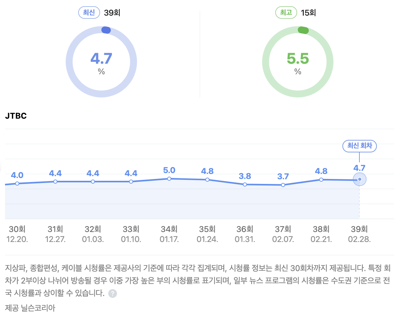 아래 정보를 통해 최고 시청률과 최신시청률, 평균 시청률 흐름을 확인하세요!