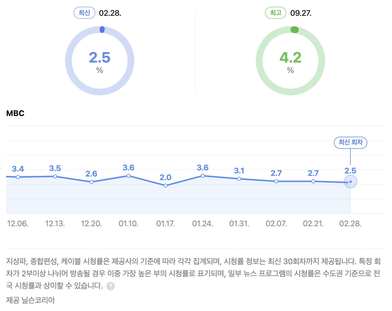 아래 정보를 통해 최고 시청률과 최신시청률, 평균 시청률 흐름을 확인하세요!