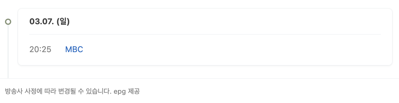 ※ 해당 프로그램의 재방송정보 및 다시보기 시간표는 아래 편성표를 확인하세요!