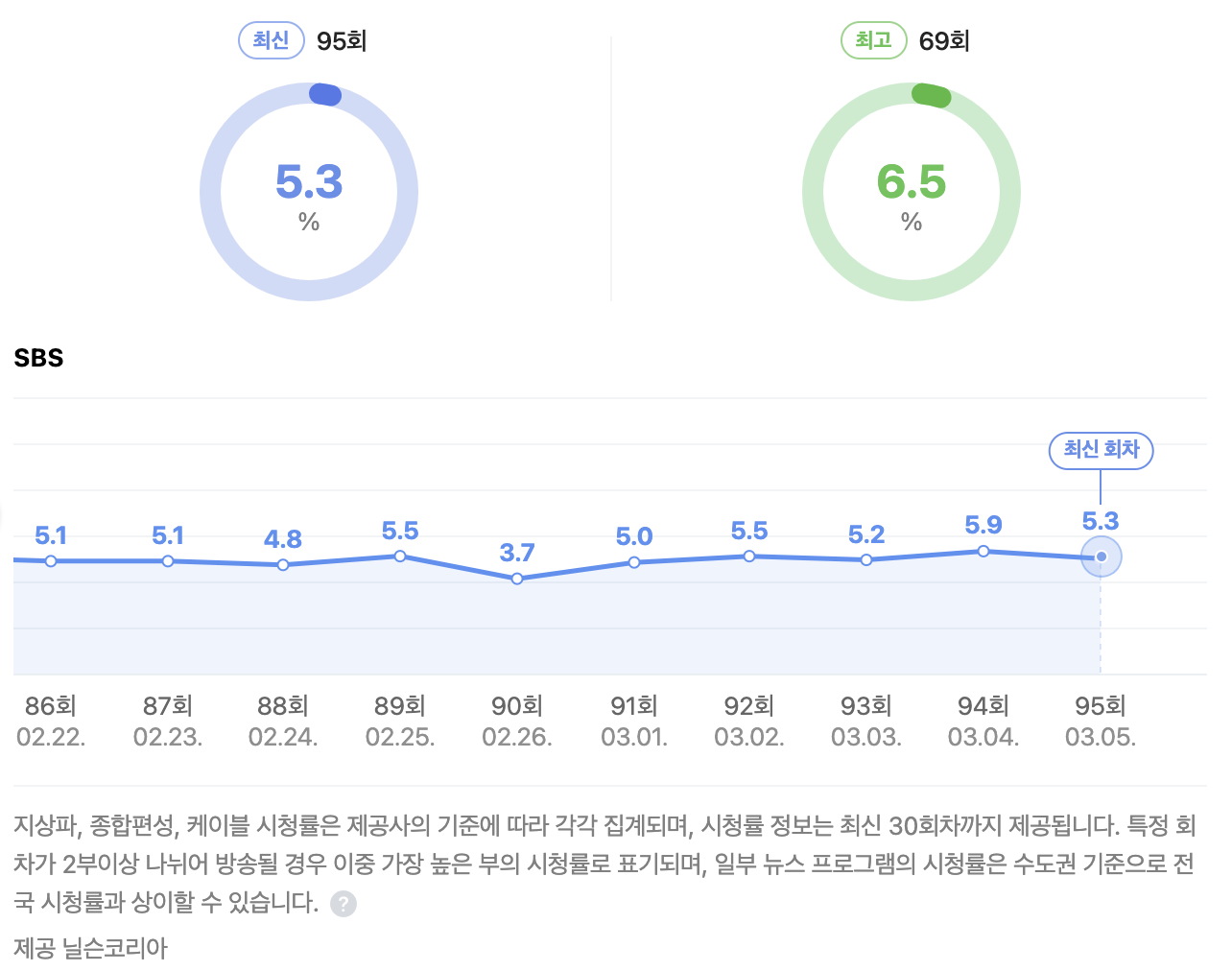 아래 정보를 통해 최고 시청률과 최신시청률, 평균 시청률 흐름을 확인하세요!