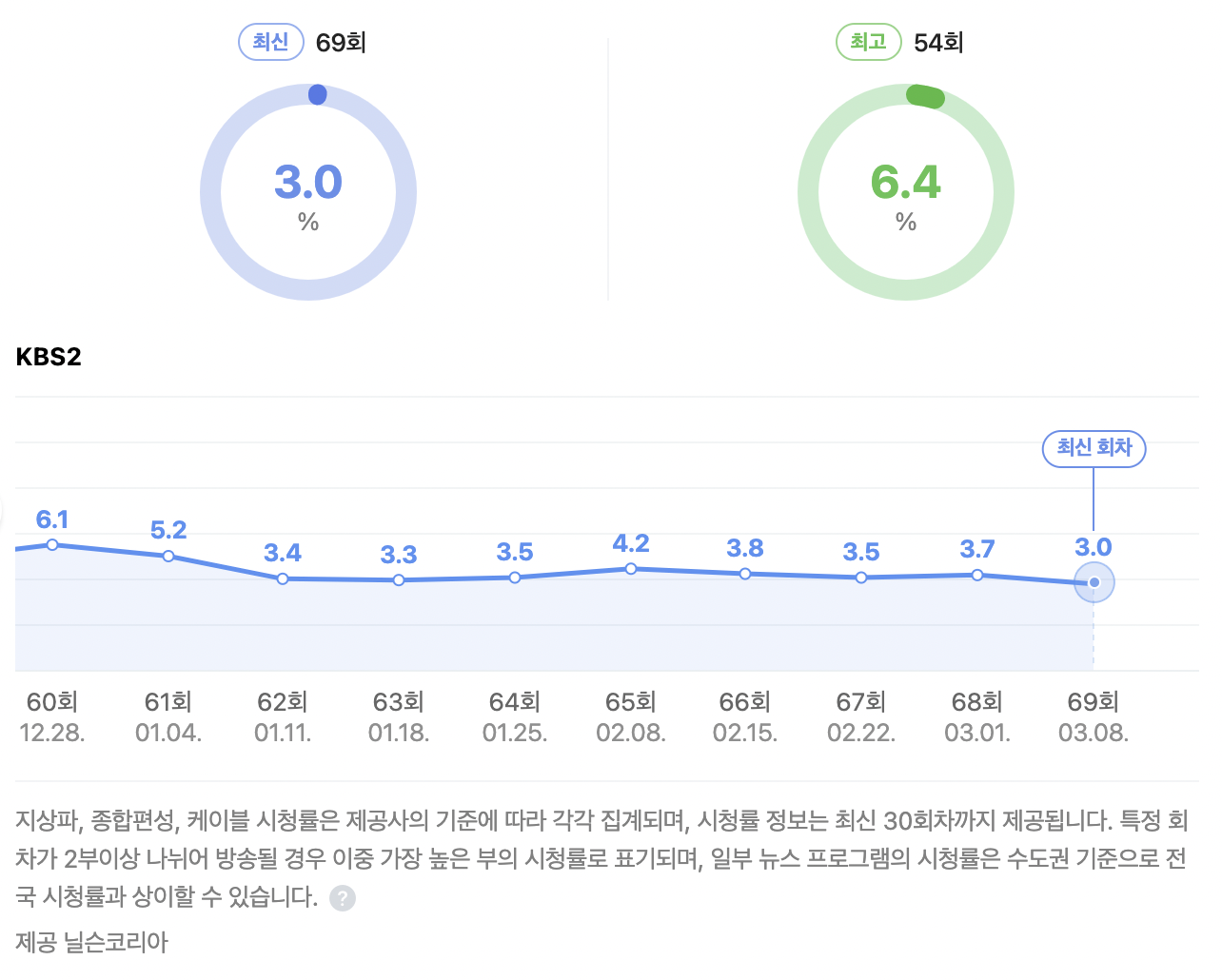아래 정보를 통해 최고 시청률과 최신시청률, 평균 시청률 흐름을 확인하세요!