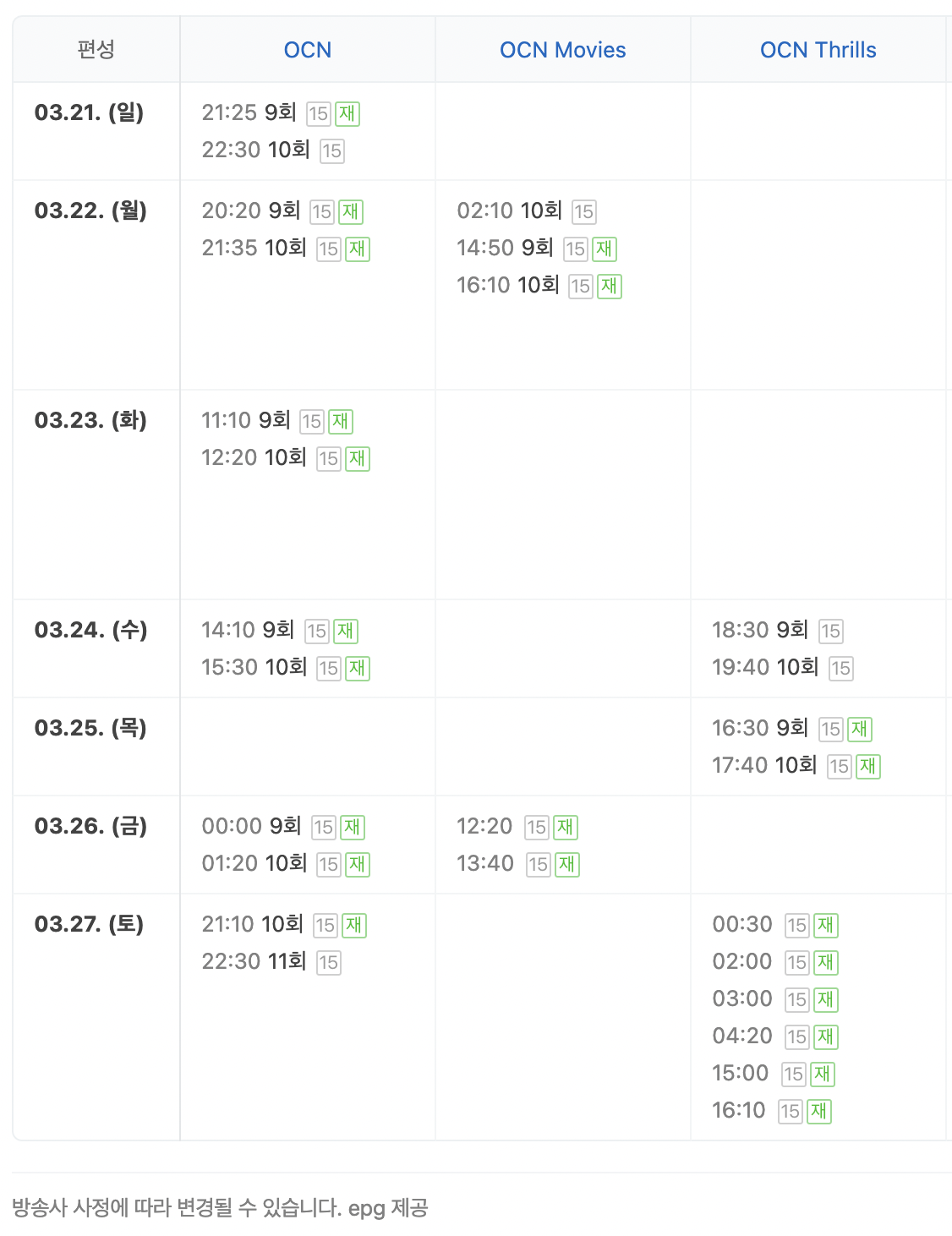 재방송 및 다시보기 편성정보 & 방영시간정보는 아래 편성표를 참고하세요!