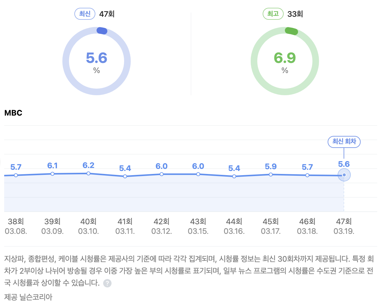 아래 정보를 통해 최고 시청률과 최신시청률, 평균 시청률 흐름을 확인하세요!
