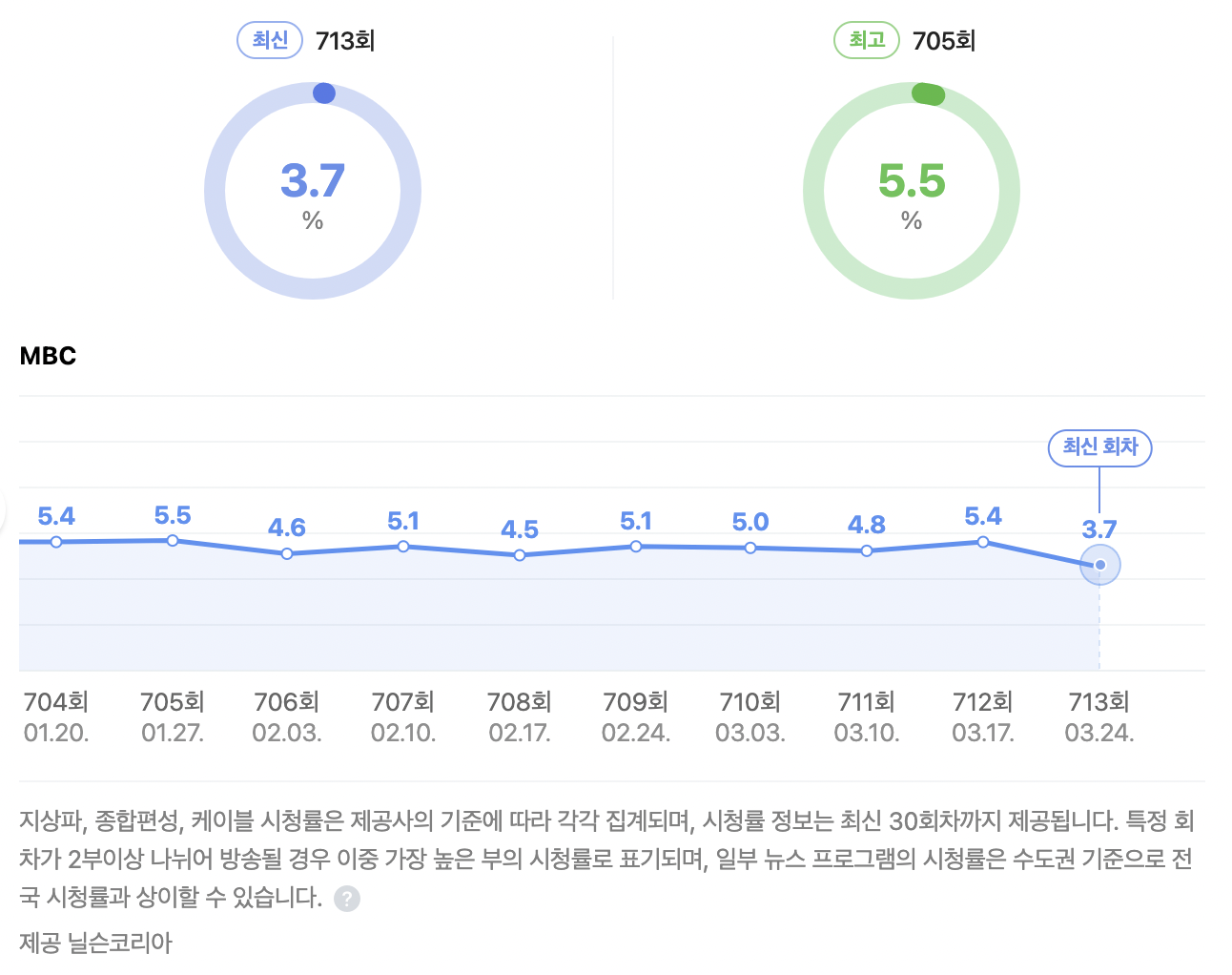 아래 정보를 통해 최고 시청률과 최신시청률, 평균 시청률 흐름을 확인하세요!