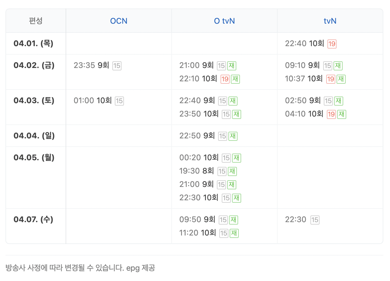 재방송 및 다시보기 편성정보 & 방영시간정보는 아래 편성표를 참고하세요!