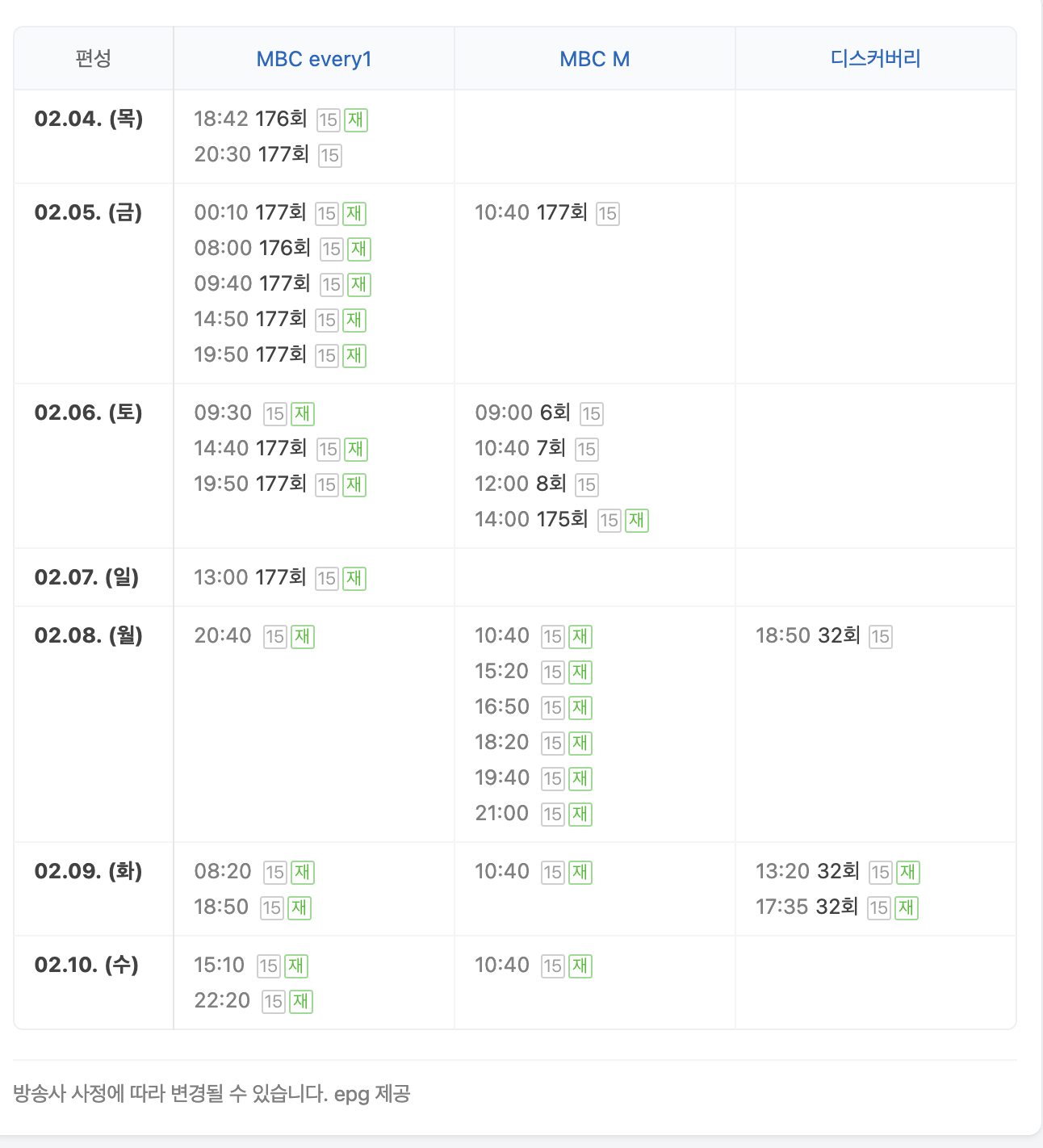 ※ 해당 프로그램의 재방송정보 및 다시보기 시간표는 아래 편성표를 확인하세요!
