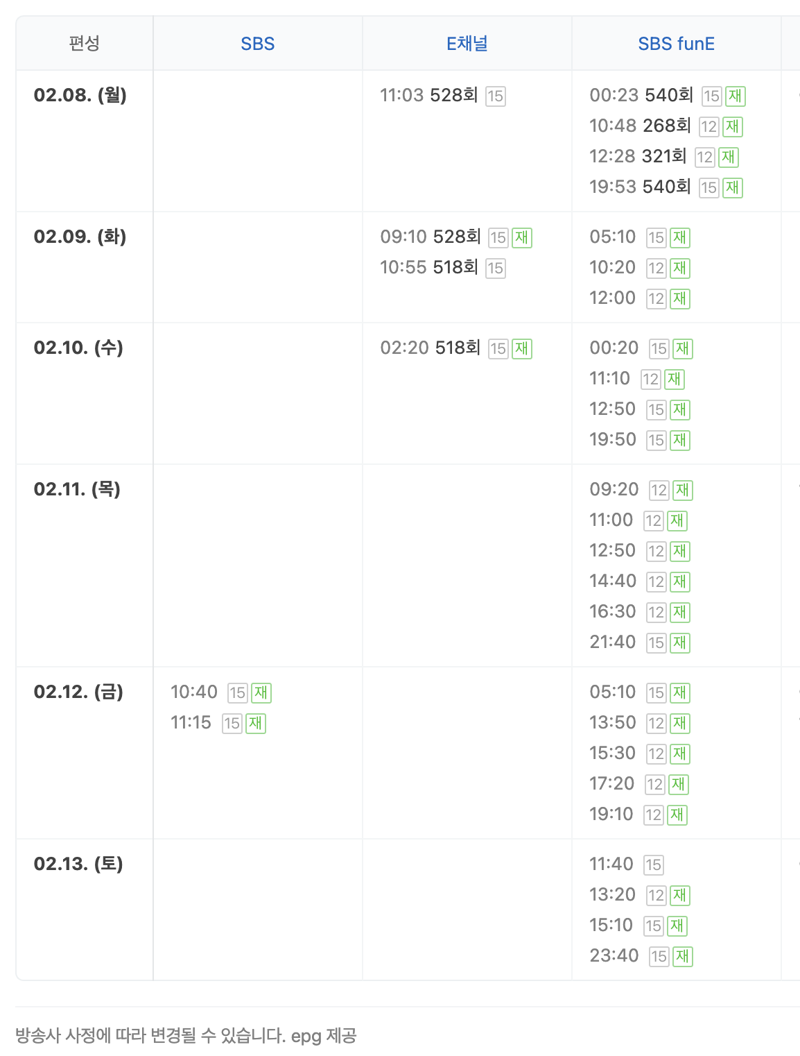 ※ 해당 프로그램의 재방송정보 및 다시보기 시간표는 아래 편성표를 확인하세요!